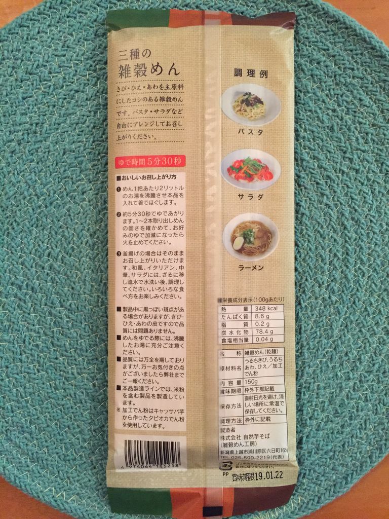 「三種の雑穀めん」をいただいたので