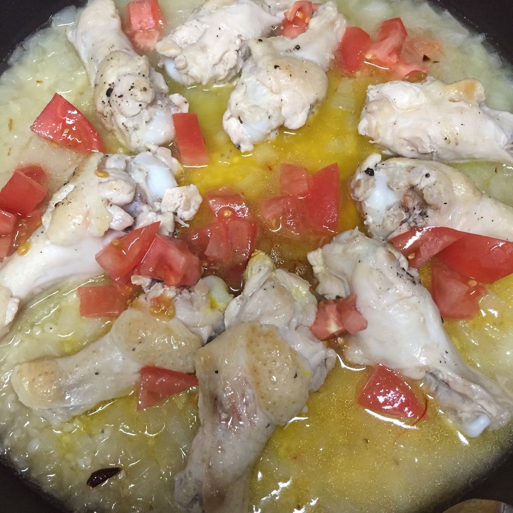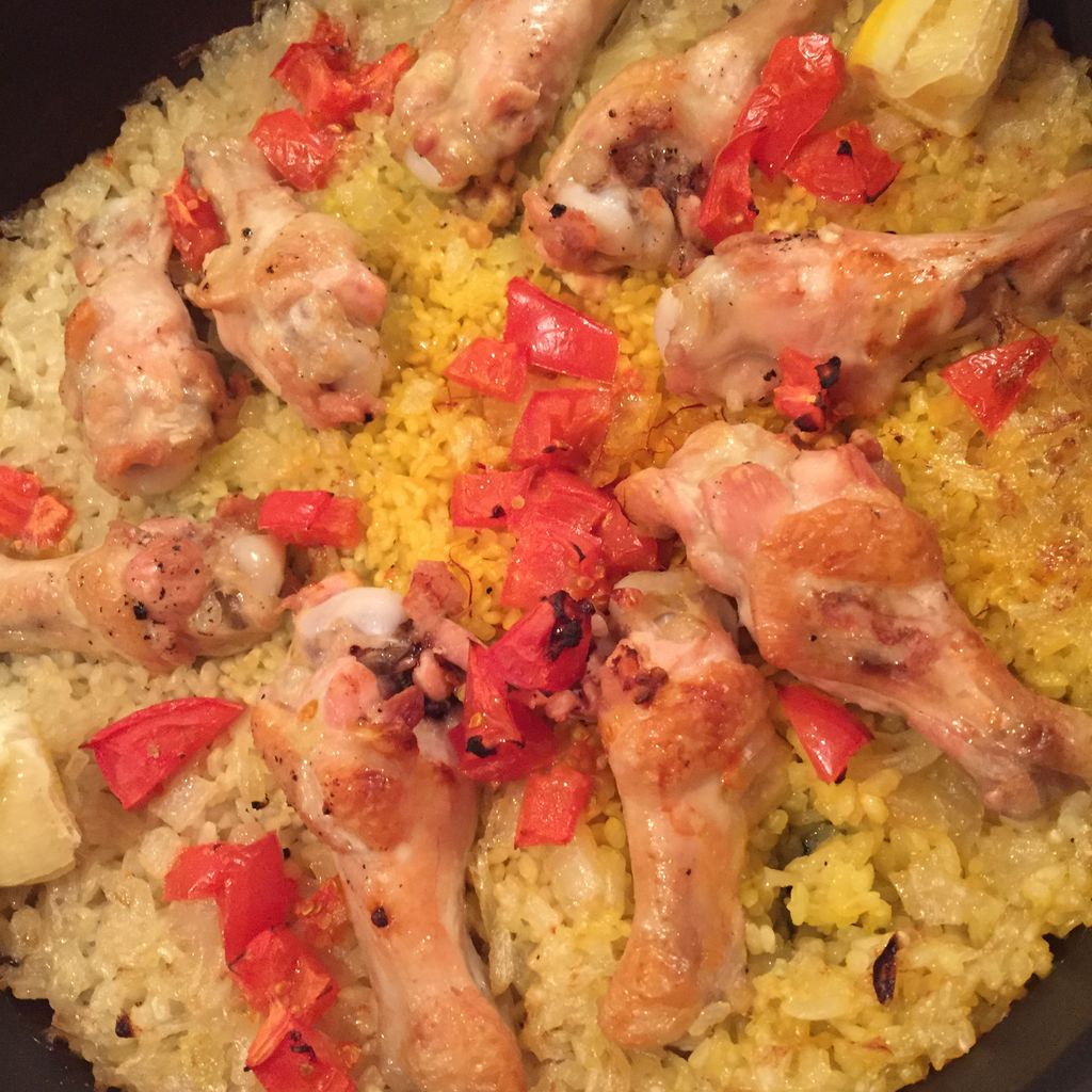 鶏手羽元のシンプルパエリア。