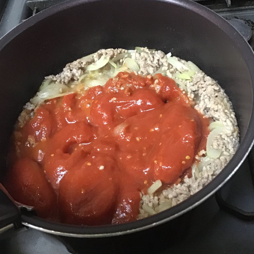トマトの水煮缶を入れる