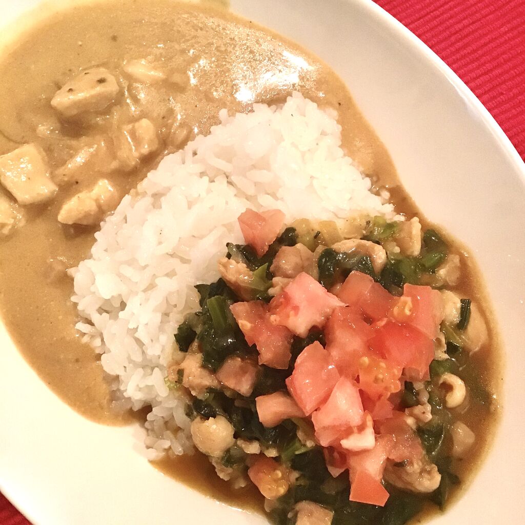ほうれん草とチキンのキーマカレー。