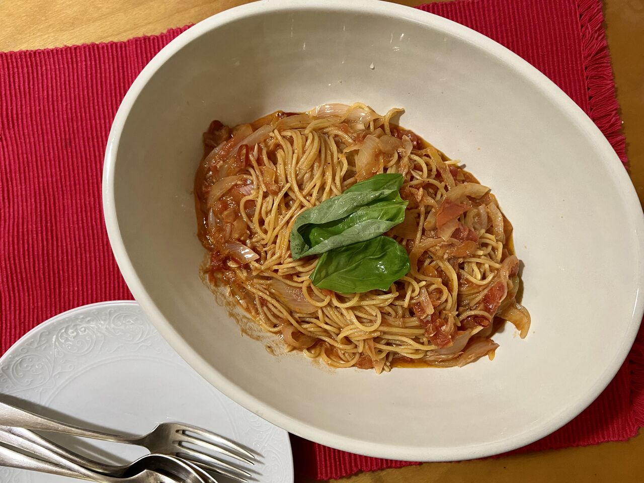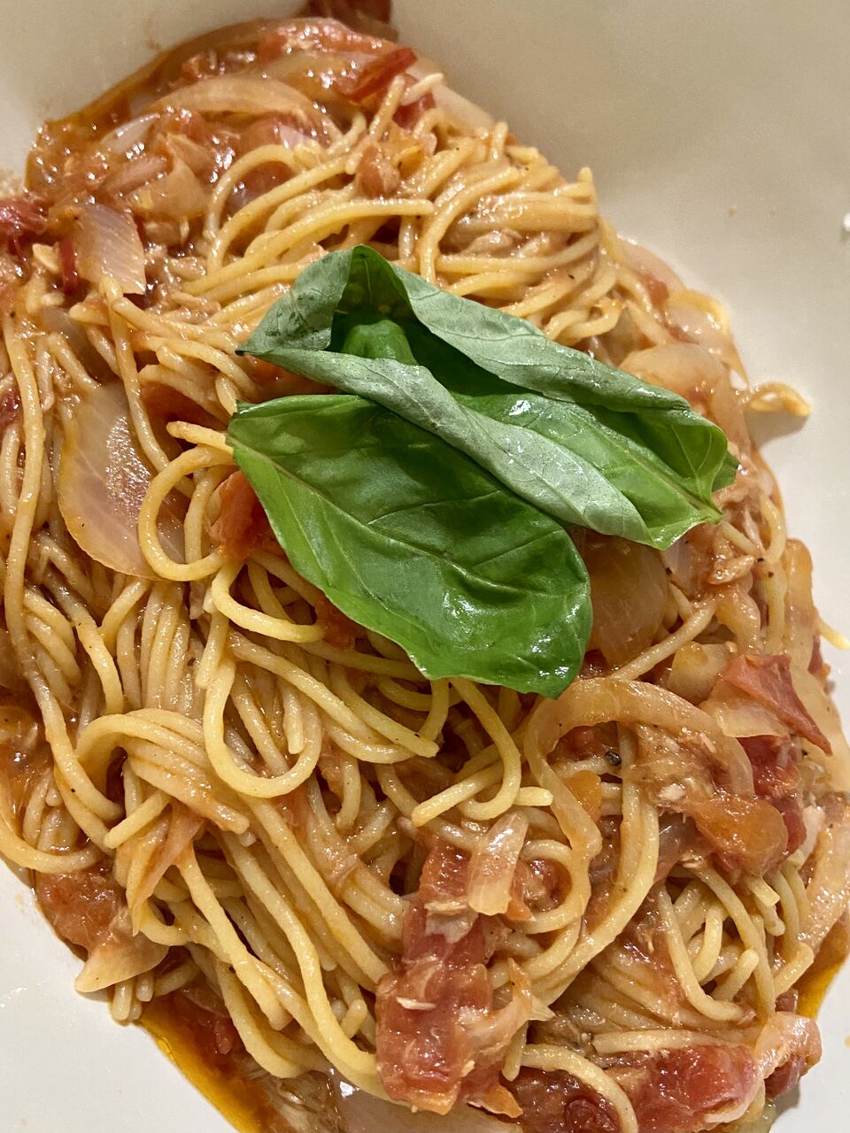 ツナとトマトのパスタにしました。
