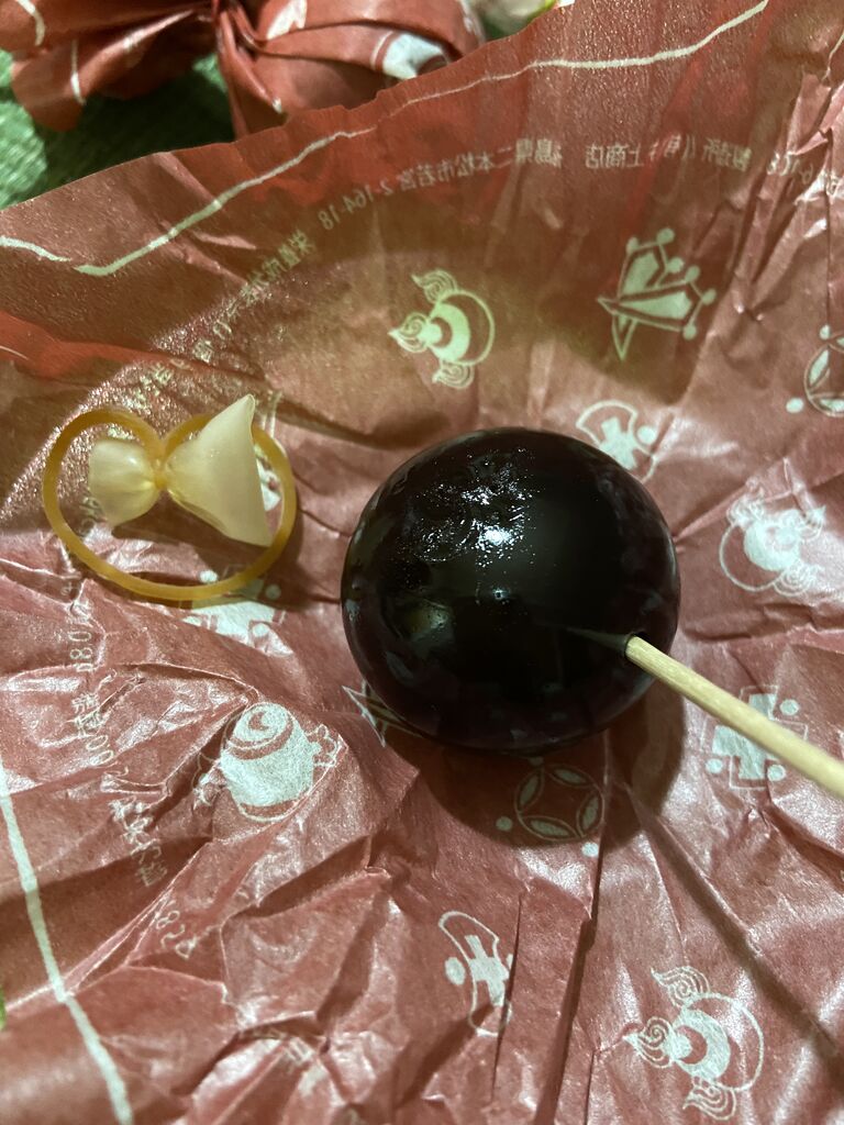 楊枝を刺すと、一瞬でプチンと皮?が向けるんだよね。