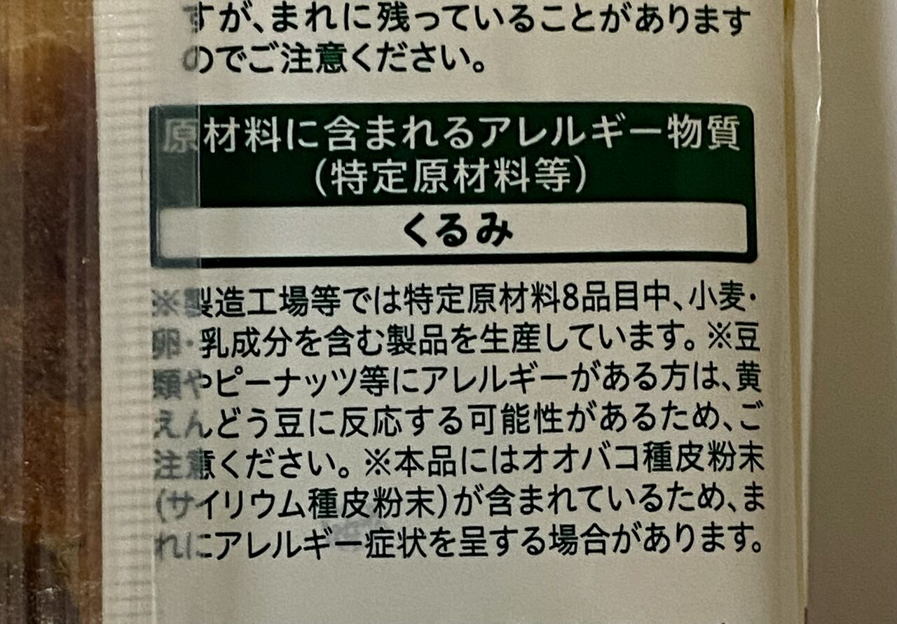 原材料は、黄えんどう豆粉、くるみ、