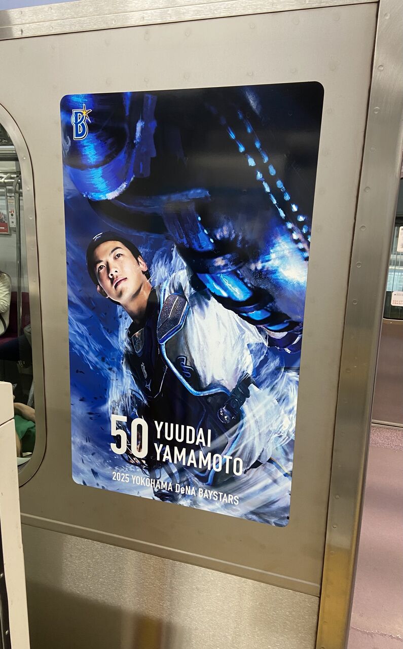 車両の外側がベイスターズ仕様で、、、